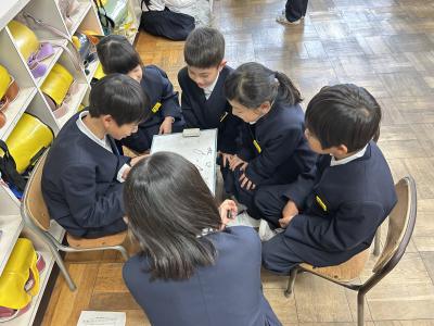 4年生子供の中で、登校時に大きな紙袋を持ってきている子がいたので、何に使うのか聞いたところ、今日のなかよしタイムに使うためのものを家で作ってきたと話していました。