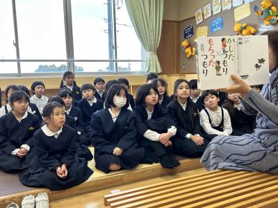 2名のボランティアの方に来校いただき、1月15日(水)は、1年生から6年生の1組の子供たちを対象に読み聞かせを行ないました。