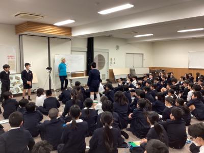 この日は6年生2クラスで、1時間ずつ授業をしていただきました。
