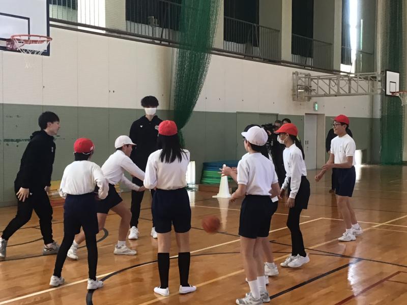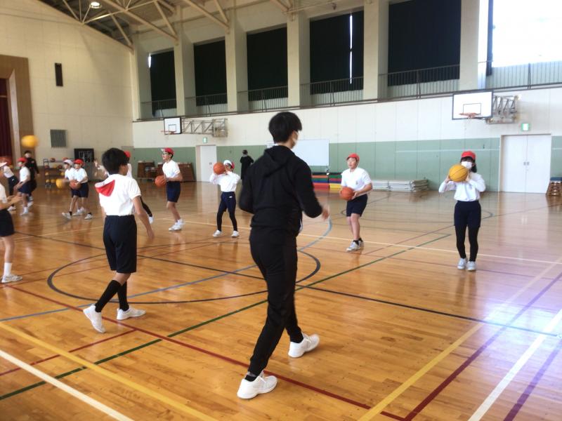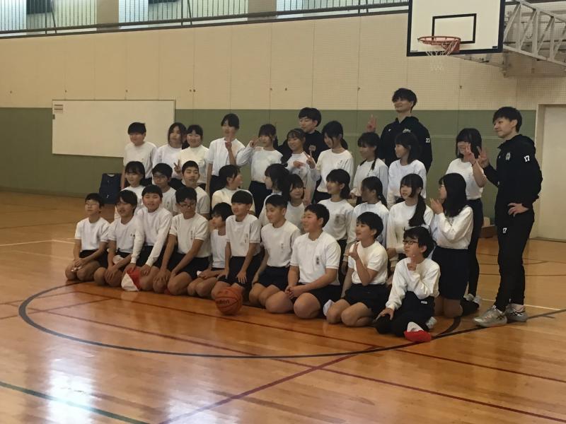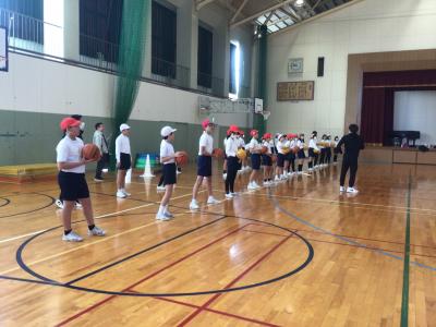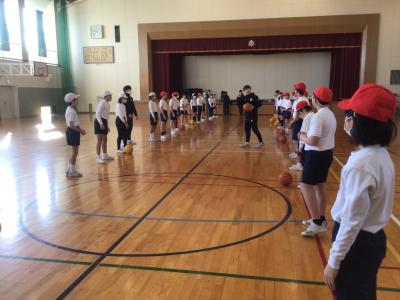1月21日(火)、石川県のプロバスケットボールチーム「金沢武士団」の選手に来校いただき、6年生の子供たちが直接指導を受けました。