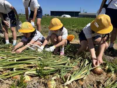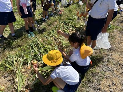 6月19日(水)4年生が玉ねぎ収穫を行いました。