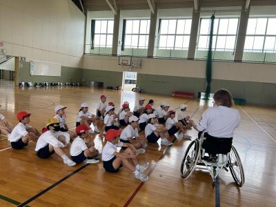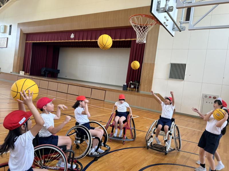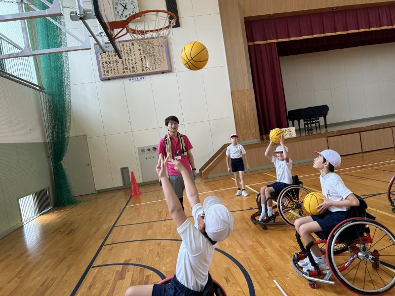7月1日(月)4年生の子供たちが、車いすバスケ体験をしました。