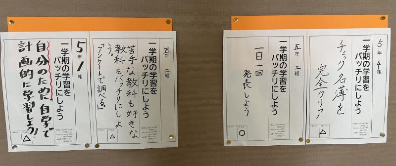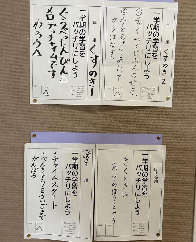 クラスごとの目標を決めて学習に取り組んでいます。