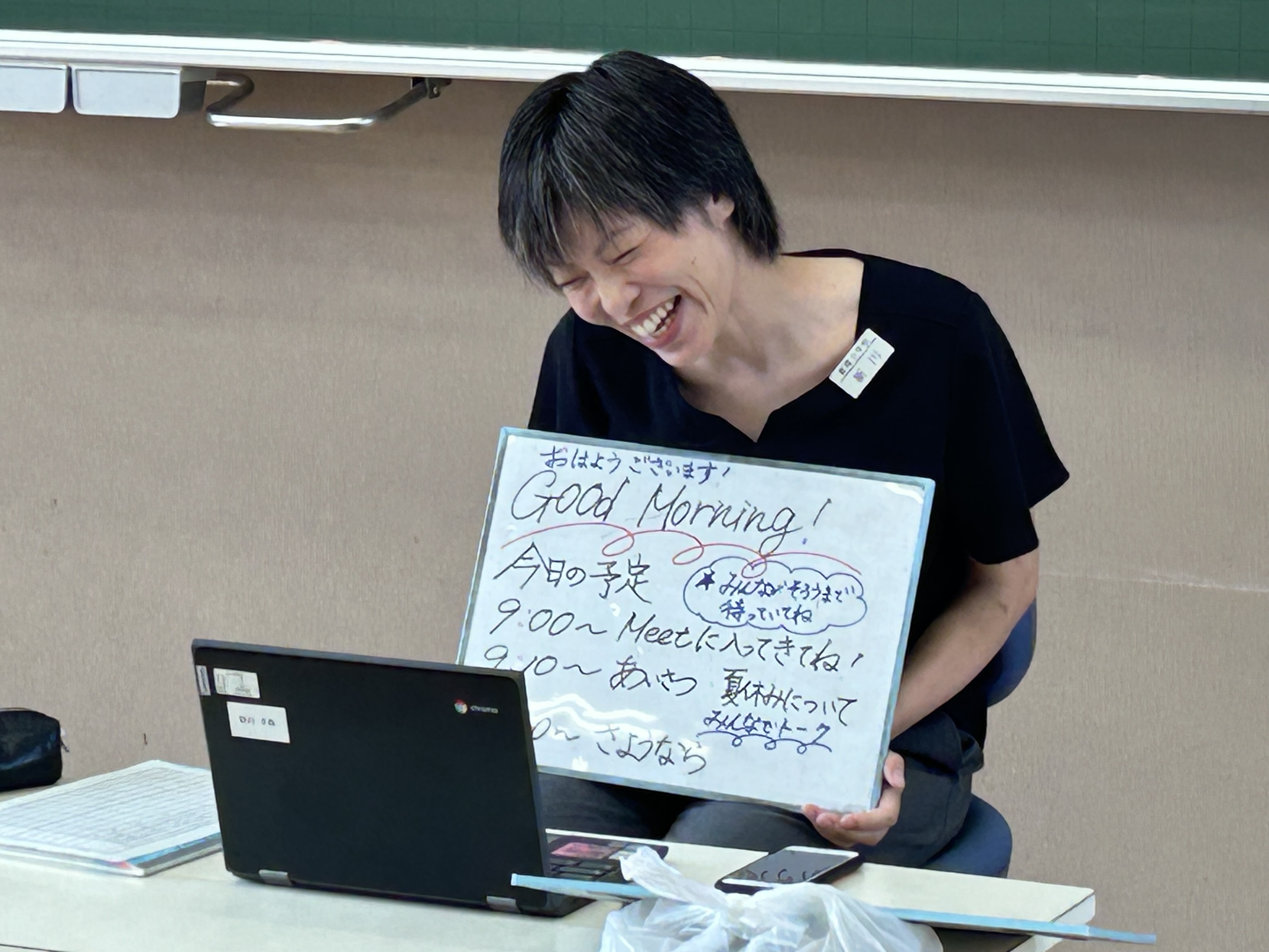 オンライン登校は短い時間だったけれど、皆さんの顔を見られて、先生たちは元気いっぱいになりました。