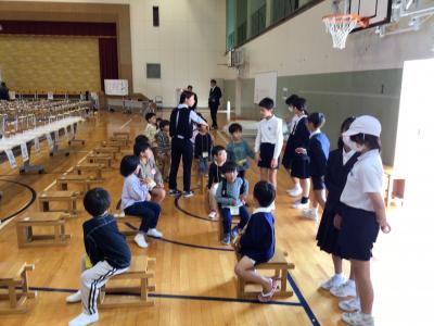 コロナのあけた今年は、本校5年生の子ども達が、健康診断を受けに来た子ども達の引率をしました。