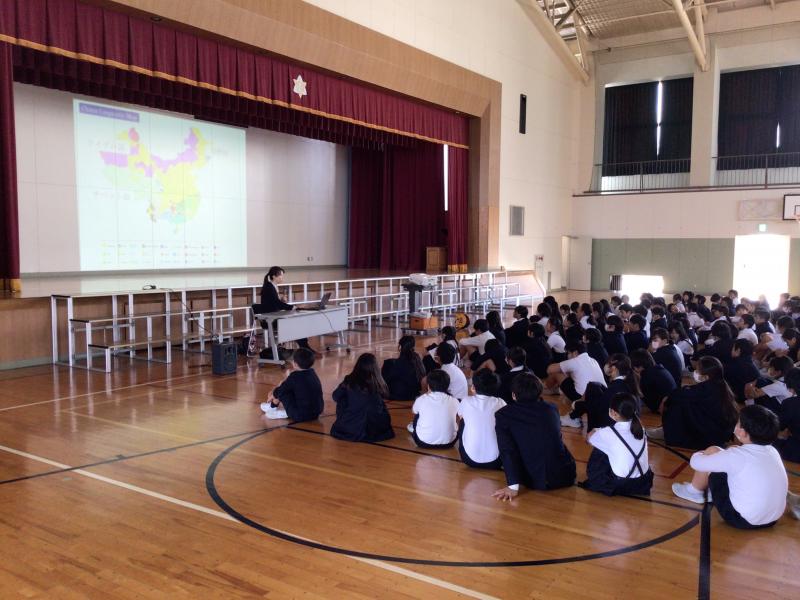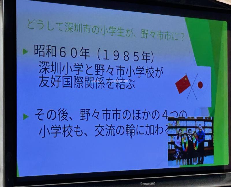 事前の10月19日(木)には、全校の子ども達に対して、深圳小学との交流の歴史について校内放送で伝えました。