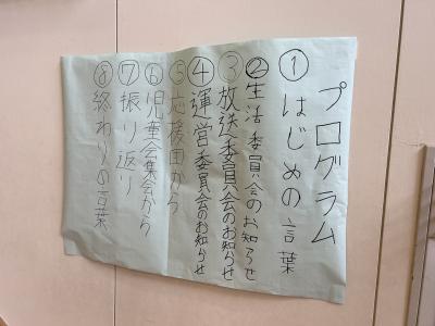 今日の集会のプログラムです。