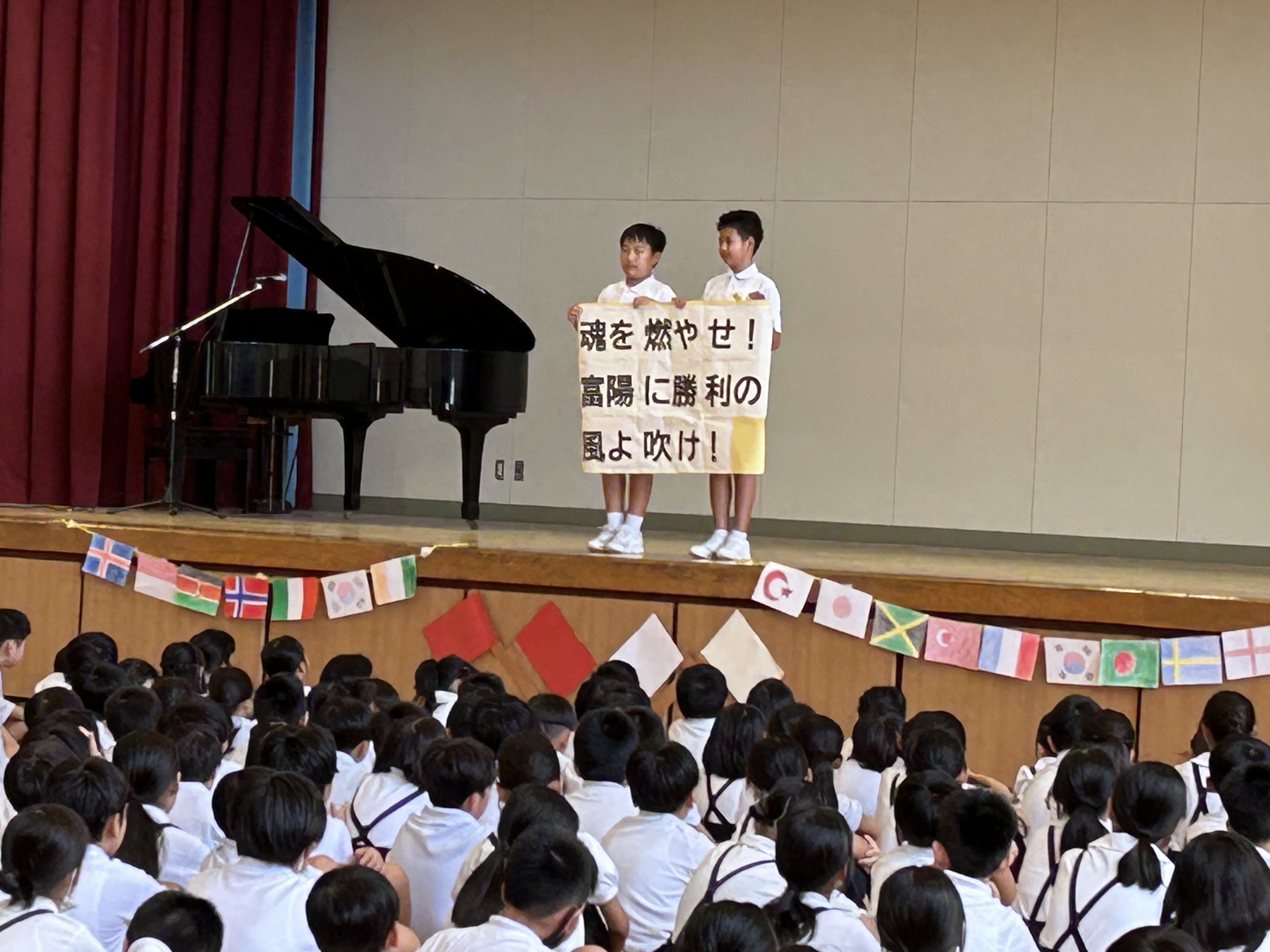 今回の集会のテーマは「全力で一致団結して、ふよう魂を見せつけよう」です。