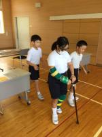 9月15日(金)4年生が、福祉の学習の中で、高齢者疑似体験を行いました。