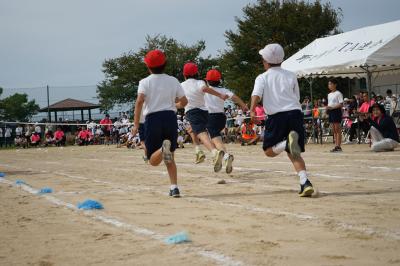 バトン渡しのミスはゼロ! 富陽小リレー侍です。
