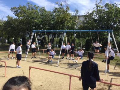 昨年度は、コロナの影響で、組み合うことができませんでしたが、今年度は組体操に挑戦。