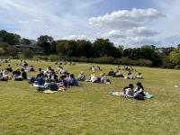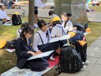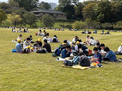 金沢城公園で、実行委員のお話を聞いてお弁当をいただきます。