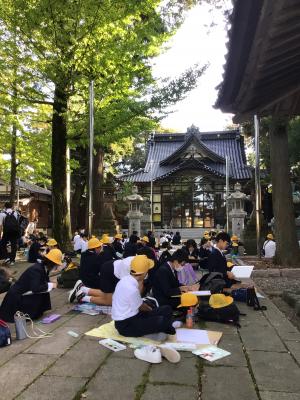 6年生は、校区にある村郷八幡神社に、写生をしに行きました。