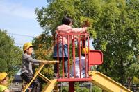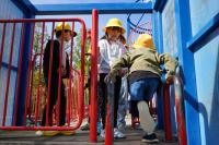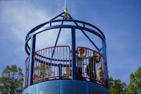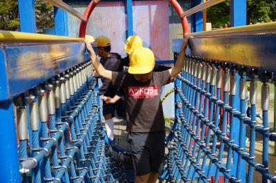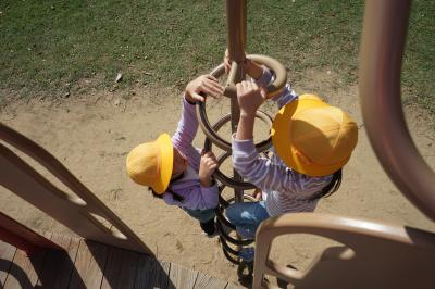 新しい公園で、楽しい遊具がいっぱいあります。