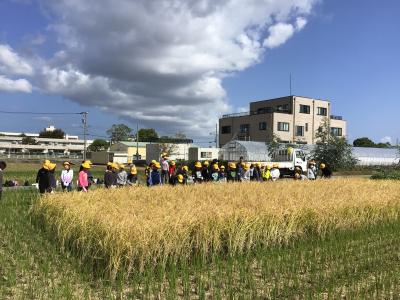 富陽小では、毎年5年生が稲を植えて育てて収穫を行っています。