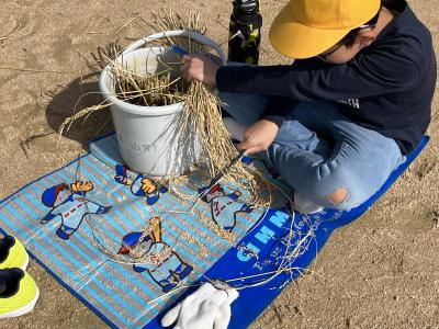 稲刈り脱穀 (5年生)