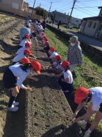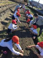 3年生はJAの方と福田さんのお力をお借りして、玉ねぎを植え付けました。