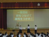 運営委員からはスローガンの紹介、集会委員会からは種目の紹介、応援団からは応援の紹介がありました。