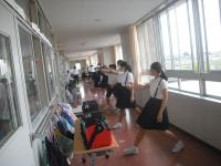 6年生は応援練習を密にならないように廊下も使って行います。