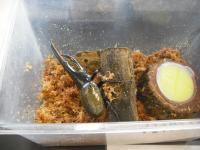 図鑑やふれあい昆虫館でしか見たことのないような「コーカサス」「ヘラクレス」その他、アフリカのクワガタムシ、ニジイロクワガタなど珍しい虫が勢ぞろいでした。