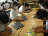 上級生が初めにデジタルで貞子さんのお話を読み聞かせし、その後、折鶴を折りました。