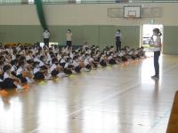 低学年・高学年に分けて体育館を広く使って行いました。