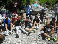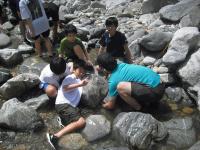 アドベンチャーパーク、焼杉クラフト、イワナつかみ、ミステリーゾーンと2隊とも同じメニューで行うことができました。