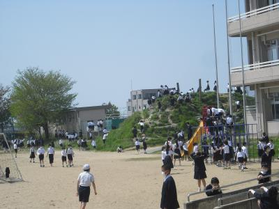 今年は桜の時期が長く、また入学式からよいお天気も続き、運動場は大賑わいです。