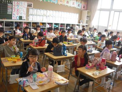 2022年4月27日 12時44分今日は残念ながら遠足は延期となりましたが、給食はないのでお弁当を食べました。