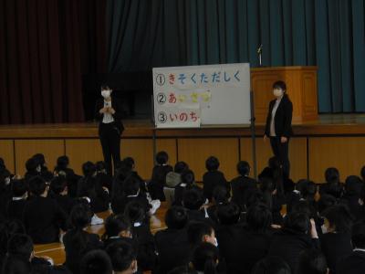 静かに集まり背筋を伸ばして話を聴く姿に成長を感じました。