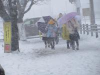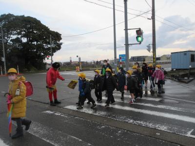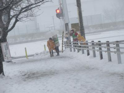 登校時間が吹雪になりましたが見守り隊の方が学校までついてきてくださいました。