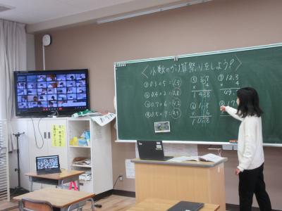 感染拡大防止のため、学力保障のため、ハイブリッド方式(対面+オンライン)で授業をしています。