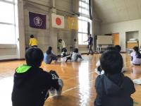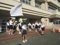 また応援団は毎朝練習がんばっています。コロナ対策のため教室では練習をしないために、玄関で動画を流しています。