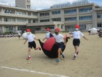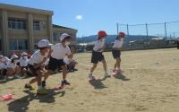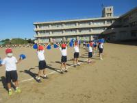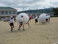 5年生は大玉運びです。知恵と協力が不可欠です。きびきびとした入退場からご覧ください。