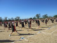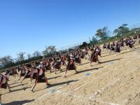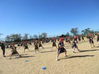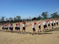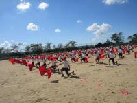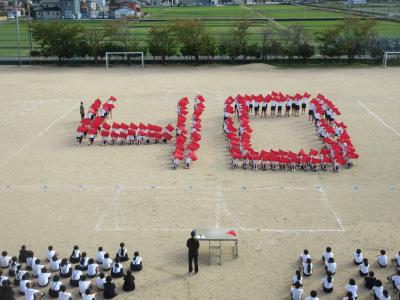 下の写真は練習中に6年生のフラッグダンスを上から撮影したものです