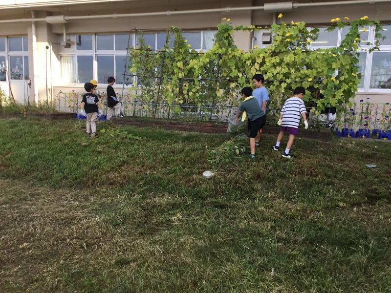 暑さ厳しい夏の間に、学校周りの草は暑さに負けじと ぐんぐん伸びていました。
