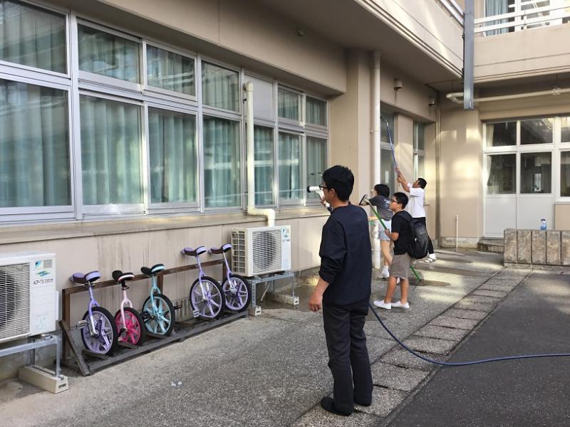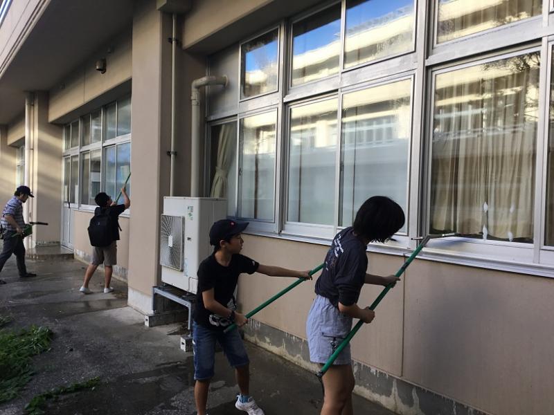 皆さんに作業をしていただいたおかげで、運動場も校舎の窓も 見違えるようにきれいになりました。