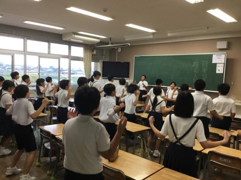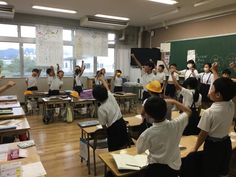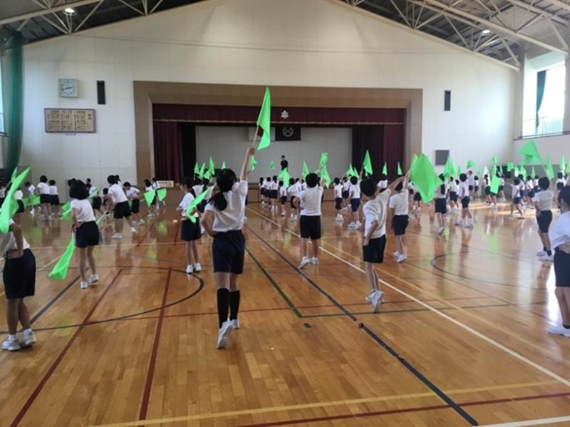朝学習の時間に運動会の応援練習を行いました。
