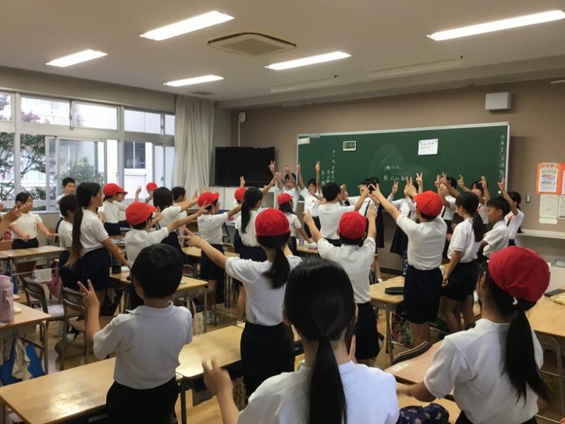 6年生が1年生~4年生までの各クラスに行き、それぞれの応援を教えてあげます。