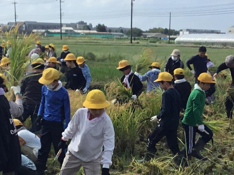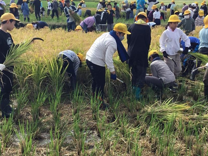 2・3限目に 5年生が稲刈り体験をしました。