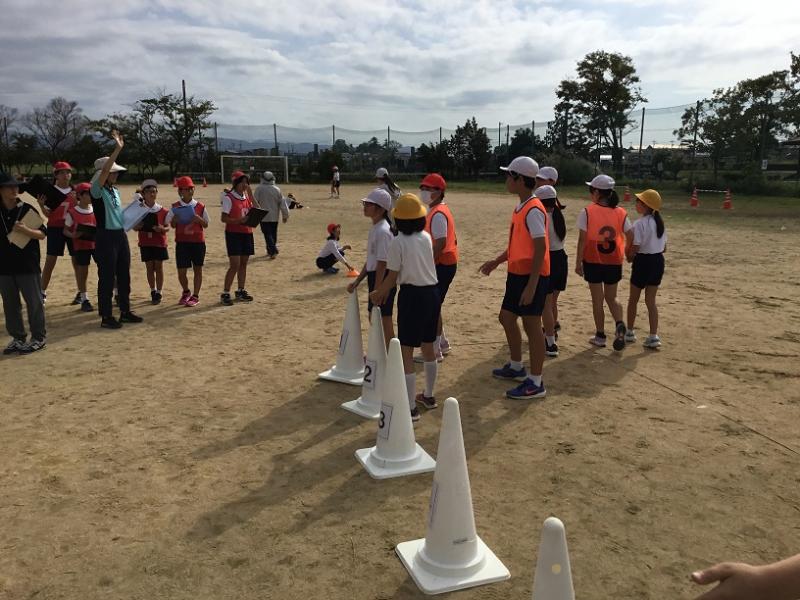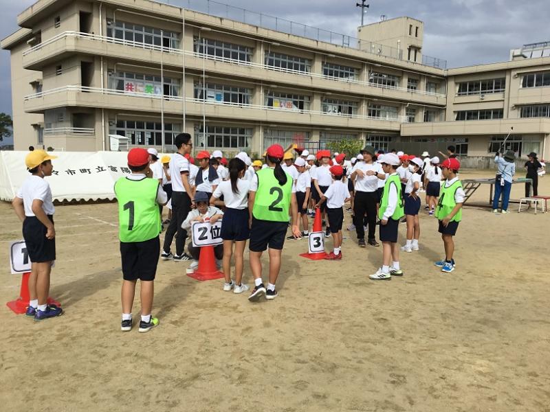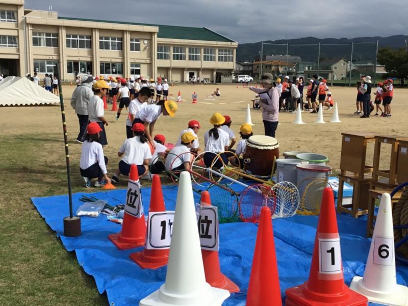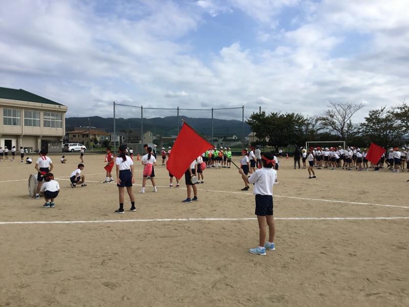 午後に運動会の前日準備を5・6年生が行いました。