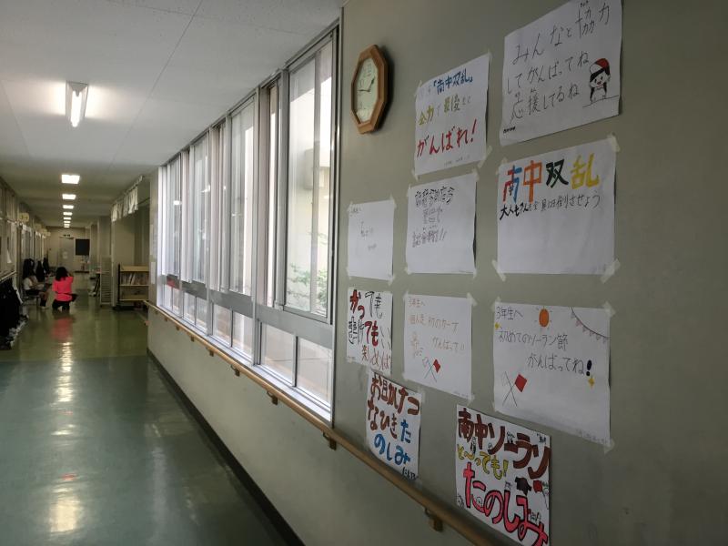 そして、そのメッセージを各学年の廊下に貼り出していました。