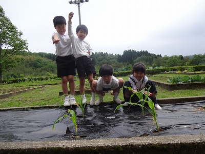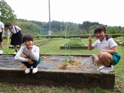 収穫はまだまだ先ですが、子どもたちは実ができるのを思い描いてワクワクしながら植えていました。