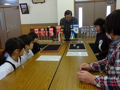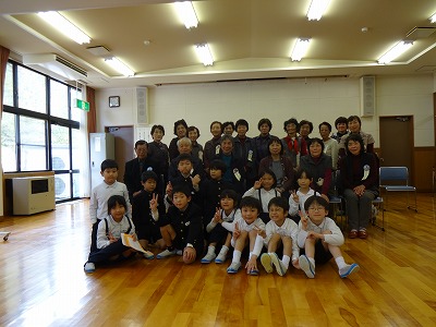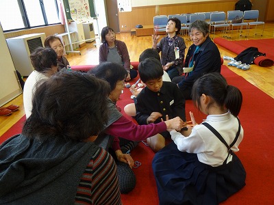 11月16日、1年生と一緒に、おじいちゃん・おばあちゃん、いきいきサロンの方々をお招きして昔遊びの会を開きました。