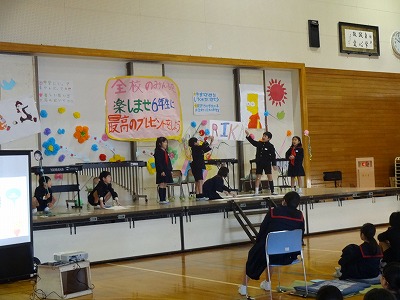 10月1日の児童集会(ハッピータイム)で、2年生が得意なことを発表しました。