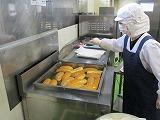 揚げパンの日は、調理員さんたちは朝から大忙しです。パンをいつもより早めに持ってきてもらって、給食室で揚げます。きなことお砂糖とほんの少しの塩を混ぜたものを揚げたパンにまぶしていきます。