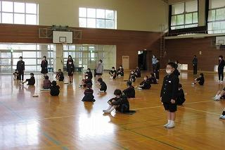 体育館に遊びに行く5年生に声をかけると