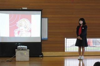 最初に、町子ども会作品展の表彰を行いました。代表の児童が、立派な姿で賞状を受け取りました。優秀な成績を収めた児童のみなさん、おめでとうございます。