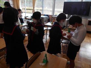 その後、ALTの先生の持ってきてくださった「プレゼント」を1人ずつ選んで開けると…キャンドル、リース、クリスマスカード、ツリーなど、中にはクリスマスに関係のあるものがたくさん入っていました。今日は、そのクリスマスに関係のある言葉を覚えました。