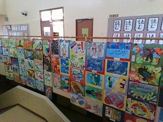 河北郡市図画作品展の低学年の入賞作品が、9.10日の2日間本校に展示されています。